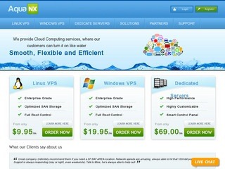 AquaNX是一家美国IDC,域名注册于2012年6月,提供基于KVM架构的Linux系列和Windows系列VPS以及服务器业务。本次介绍的是官方推出的超级优惠的KVM架构Linux系统VPS,采用256M内存,20G硬盘以及250G流量,1个IP,数据中心位于San Jose(圣何塞),原价9.95美元每月,特价月付1.99美元,优惠码:AQUANX256L,点击购买。