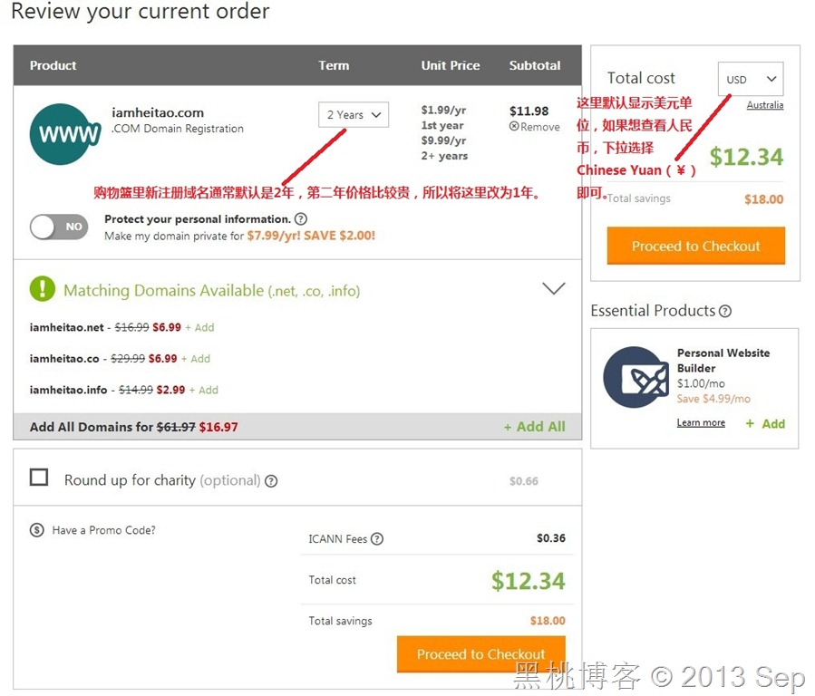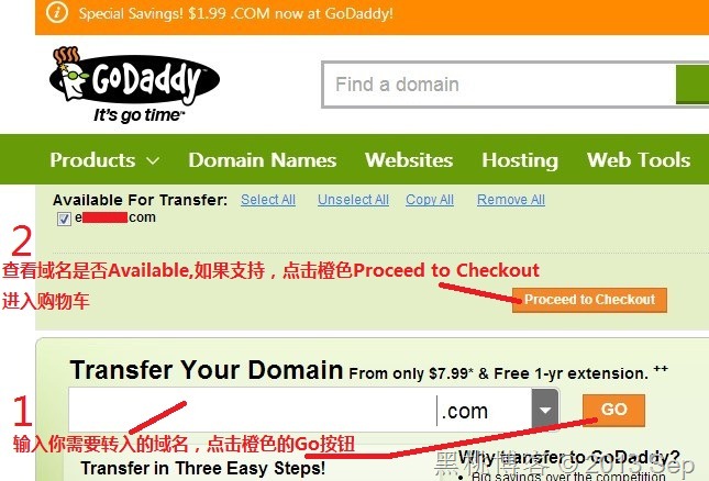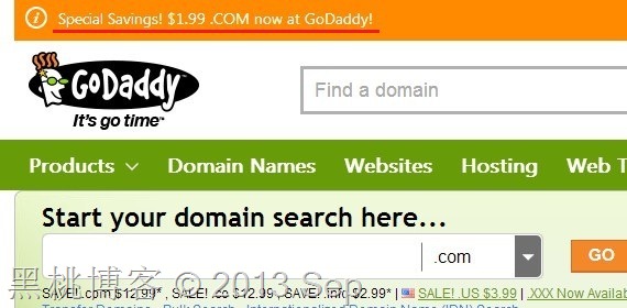 Godaddy–1.99美元.COM域名新注册或转移优惠及新版订单支付系统购买步骤