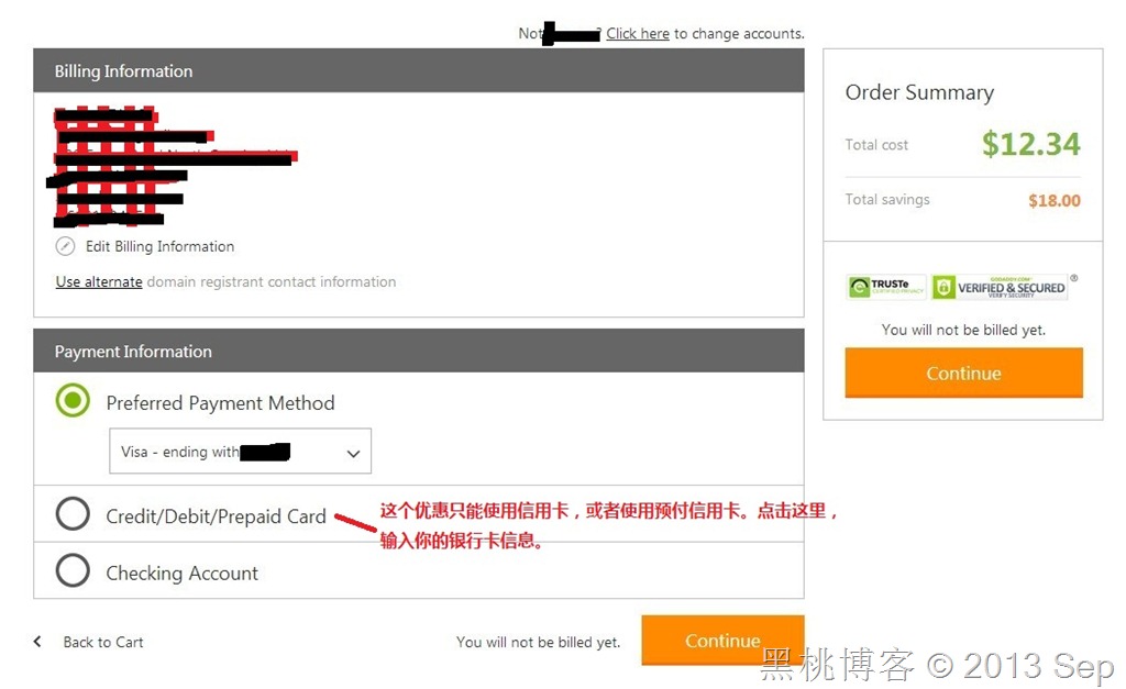 第四步,接下来登陆账号并付款。因为黑桃没有国内的信用卡。价格大家忽略,看提示就好。