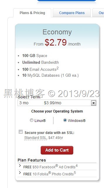 选择Economy经济型套餐,周期为3个月,如下图所示,点击Add to Cart后会出现两个画面,全部默认不选,点击Continue,直至进入购物车